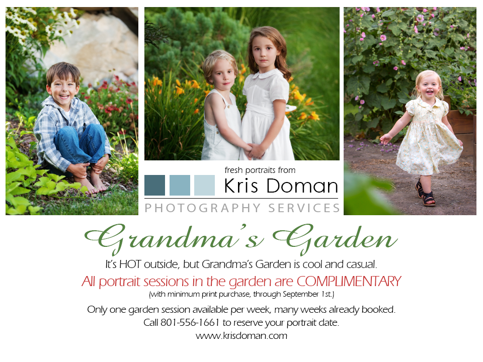 Grandma's Garden is pretty much my favorite (and exclusive!) place to shoot in the summer. We have an incredible pale-pink hollyhock this year, along with the white cone flowers and July lilies in flaming reds and oranges. I am waiving ALL session fees for the garden this year with minimum print purchase. Call me to schedule your back-to-school portraits or a small family session for free! 801-556-1661